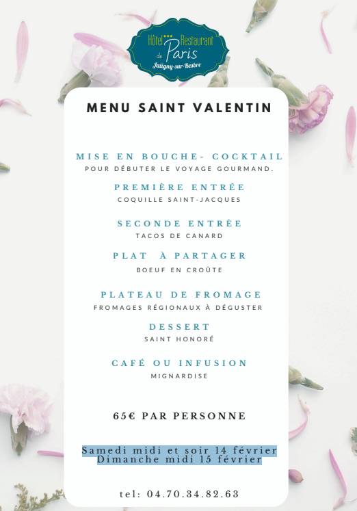 Pour toute information ou réservation, n'hésitez pas à nous contacter par téléphone au 04 70 34 82 63 ou par mail hoteldeparisjaligny@hotmail.com